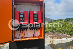 3044永利研发和技术团队支持和配合AWPower工程师为6个泵站成功设计和实施定制了光伏污水循环系统。每个泵站都配备了2台Solartech PB-G3系列智能光伏扬水逆变器,这些逆变器连接到多个泵上,这些泵在主湖和池塘之间移动水,以清除污水保持水质。系统所有运行数据信息都通过连接到蜂窝网络的内置无线通信模块传输到基于云的信息存储和报告系统,从而可以对泵站进行全面的远程监控。同时,在夏季光伏发电达到峰值时,光伏系统多余的发电量还可以输出到电网。