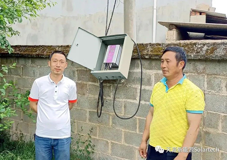 云南楚雄水城村光伏扬水灌溉项目,建设安装于2013年4月,系统由2.2kW Solartech PB光伏扬水逆变器、1.5kW全不锈钢深井泵、2.5kW多晶硅组件阵列组成。主要用于解决水城村农业大棚及苹果树光伏灌溉,至今系统已经完好运行10年。在这期间,累计发电3万余度,相当于节省标准煤12吨,减少CO2排放30吨。自系统成功安装以来,有效地解决了水城村“工程性”缺水困局,让村民多渠道增收有奔头,让广大农民都富裕起来。特别是今年的旱情期间,安全保障了百姓的农业生产和生活用水。