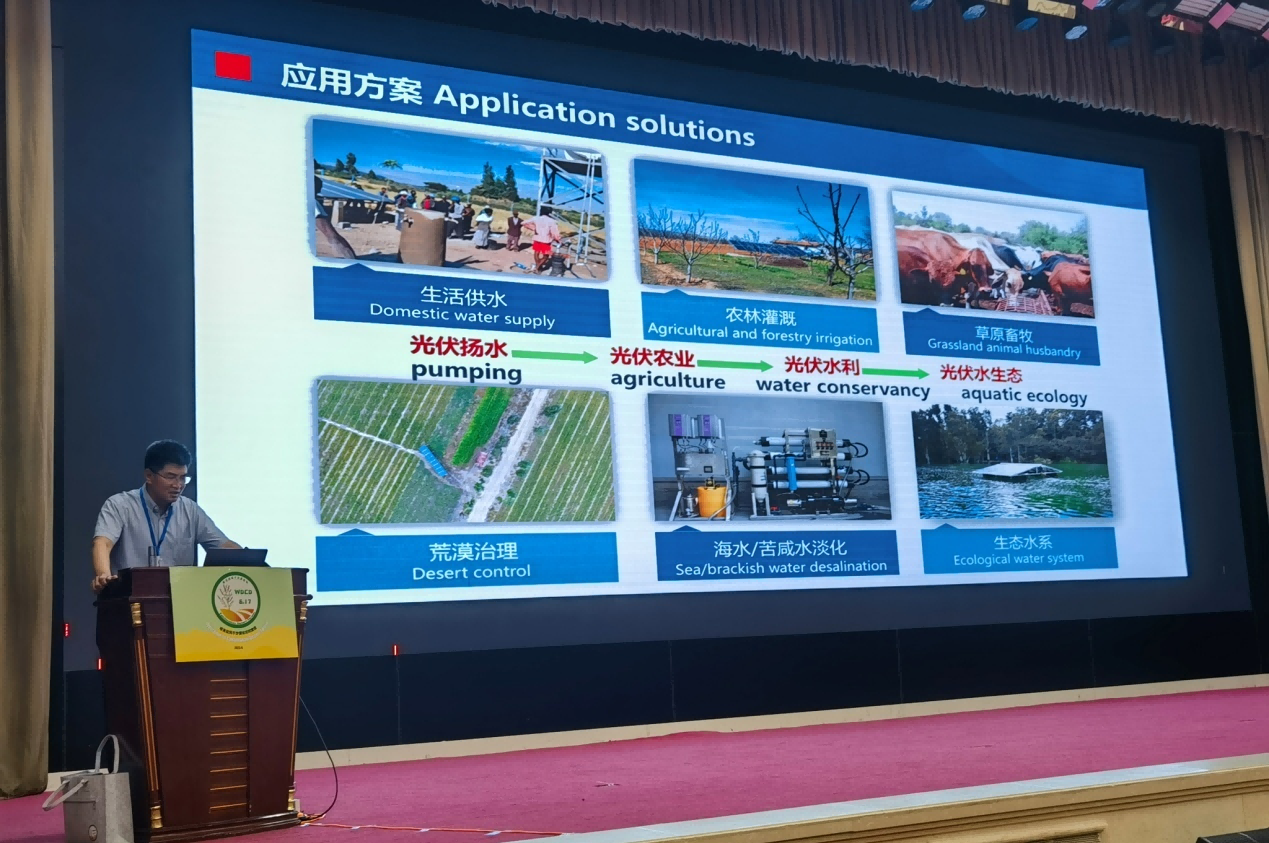 清华大学徐政教授,在“光伏水生态之路”论坛报告中,倡导光伏水生态全球发展,增进光伏扬水技术更好的赋能土地与人民,推动光伏水利产业联合泛非“绿色长城”建设,启航光伏水生态新征程,发展光伏水利产业联盟,建立多层次伙伴关系,以多元化的合作形式,共同促进生态恢复,让水的世界充满阳光。