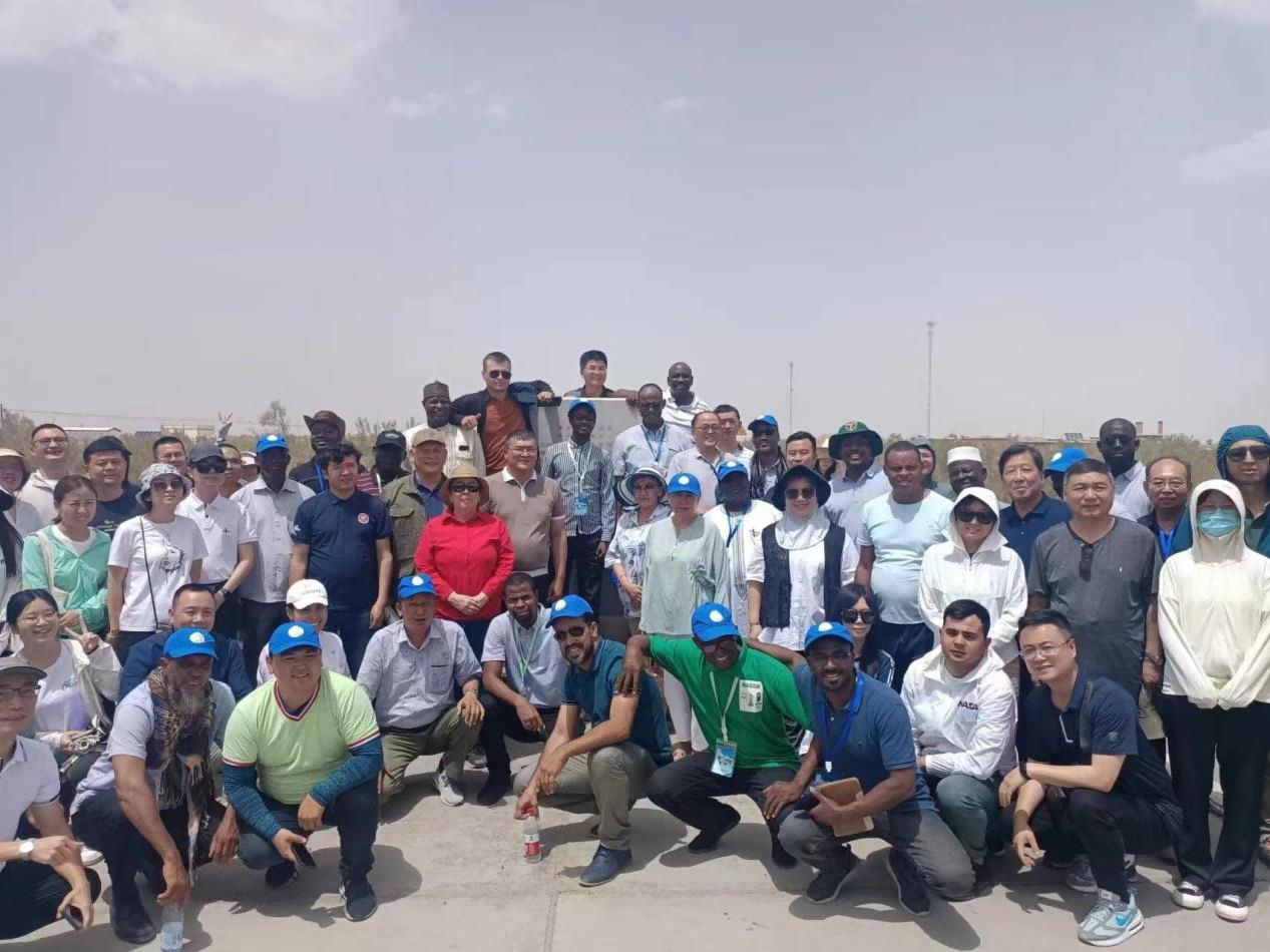 论坛结束后,来自非洲绿色长城倡议有关国家和中亚咸海地区以及蒙古等14个国家代表,驱车500多公里,来到新疆策勒县中科院新疆生态与地理研究所策勒沙漠研究站,参观、考察、学习和交流。